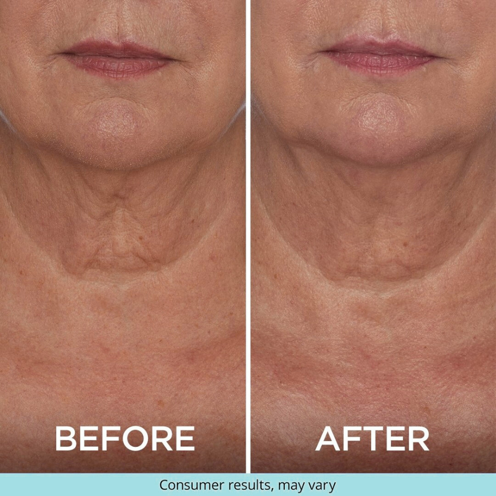 Matrixyl and Argireline–type peptides plus copper peptide signal collagen and elasticity. The neck looks tighter and bouncier, and lines look softer.